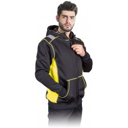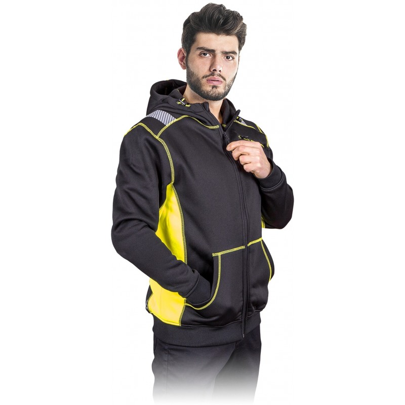 Bluza do pracy z kapturem. Nowoczesny design, kilka kieszeni, kaptur oraz drobne elementy odblaskowe zapewniają funkcjonalność, komfort, wygodę oraz polepszają widoczność użytkownika w trakcie wykonywanych prac. Znajduje ona zastosowanie w wielu branżach.
