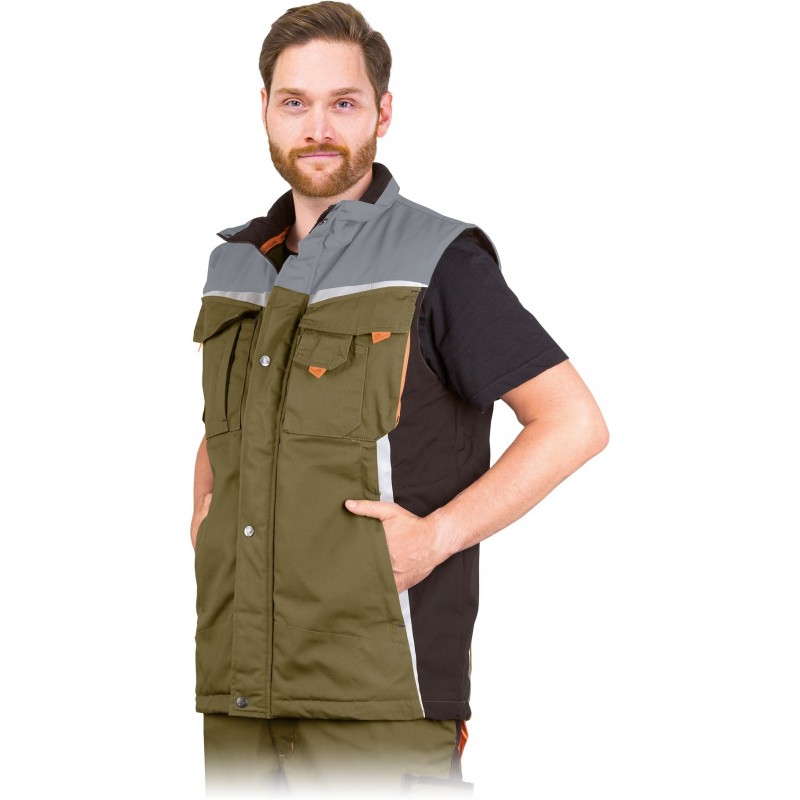 - LH-NAW-V_KHBRP - Khaki bezrękawnik roboczy z brązowo pomarańczowymi wstawkami