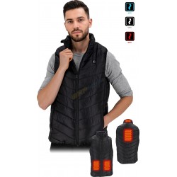 - kieszeń wewnętrzna z wodoodpornym kablem USB (z osłoną zabezpieczającą złącze) do podpięcia powerbanka zapinana na suwak- wodoodporne panele grzewcze z trzystopniową regulacją w dwóch strefach - plecy oraz klatka piersiowa