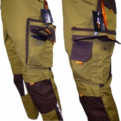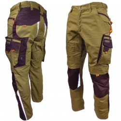 - LH-NA-T_KHBRP - Khaki spodnie robocze do pasa z brązowo pomarańczowymi wstawkami