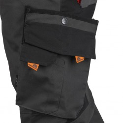 - LH-NA-T_BGP - Czarne spodnie robocze do pasa z granatowo pomarańczowymi wstawkami